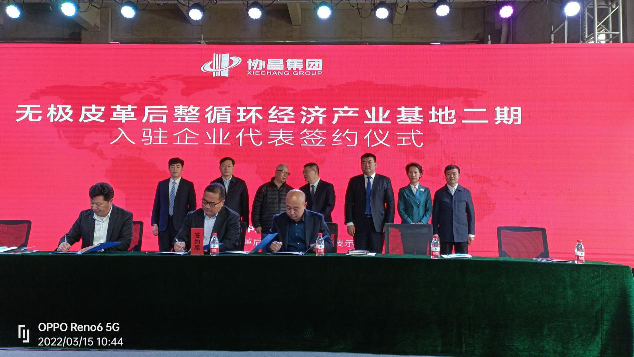 河北榮程再生革制品有限公司,無極縣皮都生物科技有限公司與協(xié)昌集團進行現(xiàn)場簽約